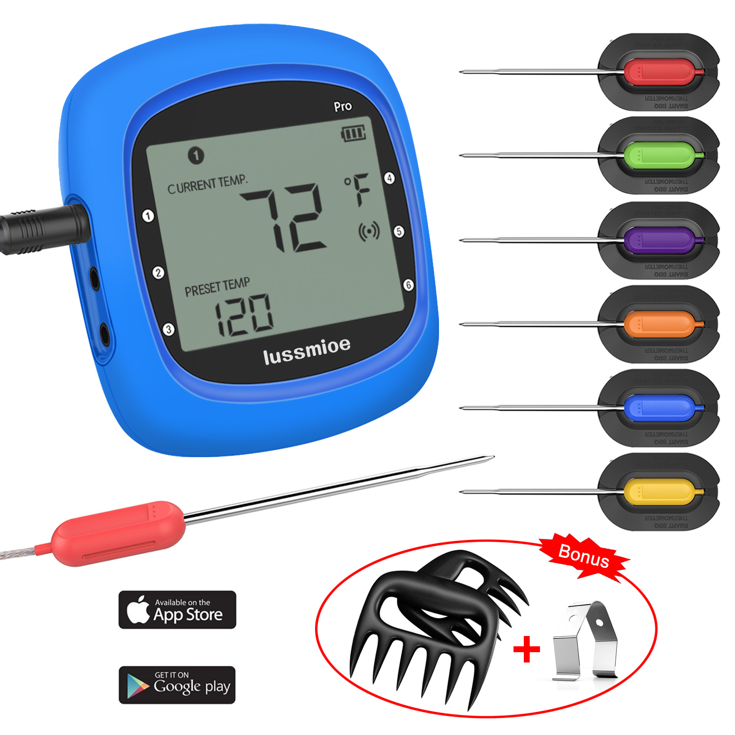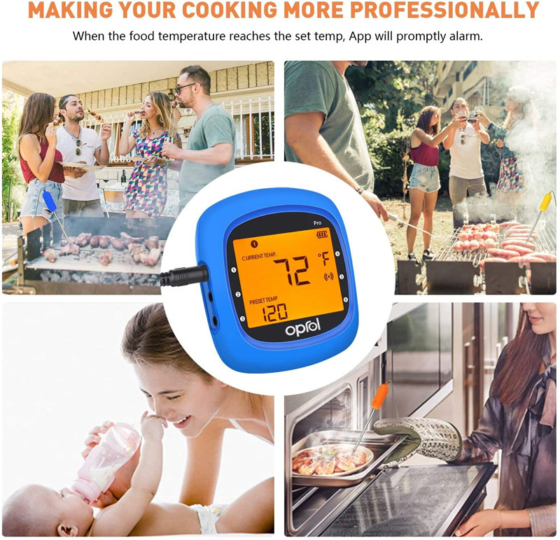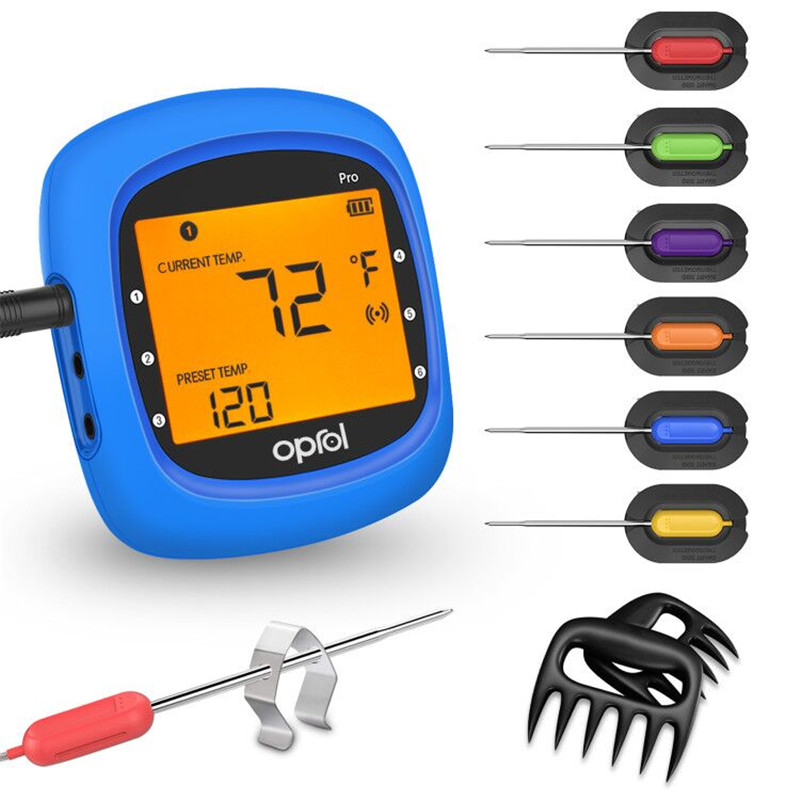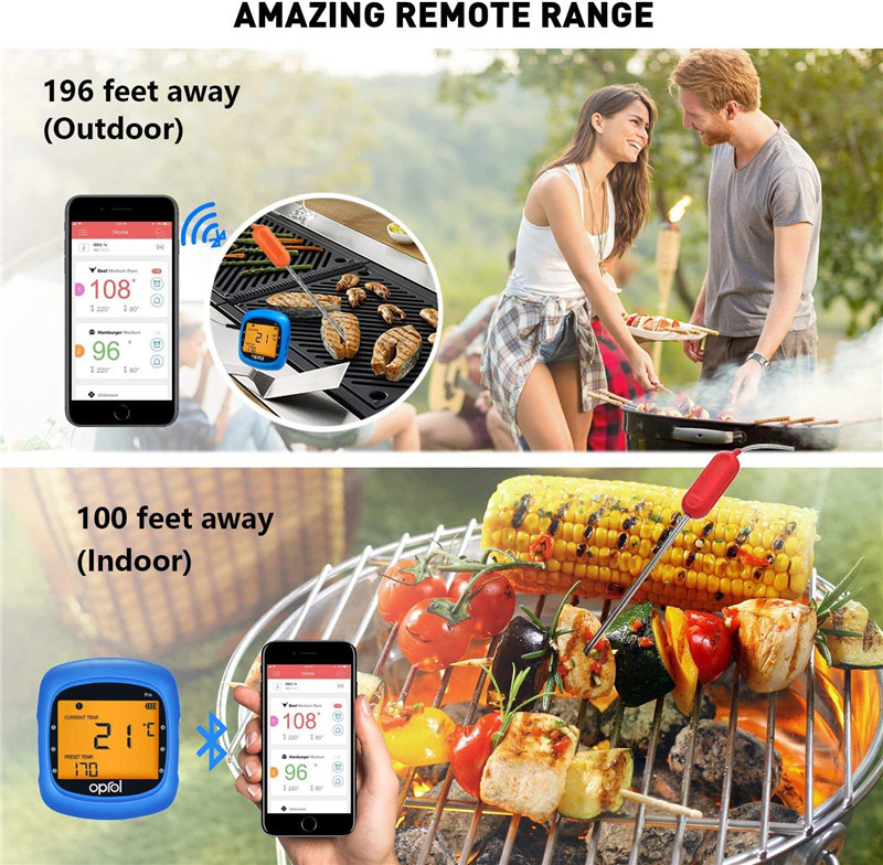 Bluetooth Meat Thermometer, Wireless Digital BBQ Thermometer for Grilling Smart with 6 Stainless Steel Probes Remoted Monitor for Cooking Smoker Kitchen Oven, Support iOS & Android